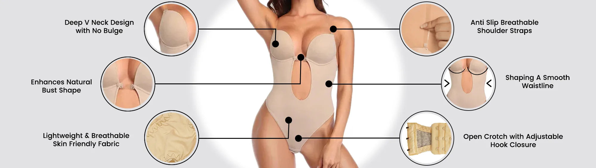 The Backless Bodysuit is designed with a striking backless cut, luxurious breathable fabric, and adjustable straps, making it perfect for bold, elegant, and versatile styling.