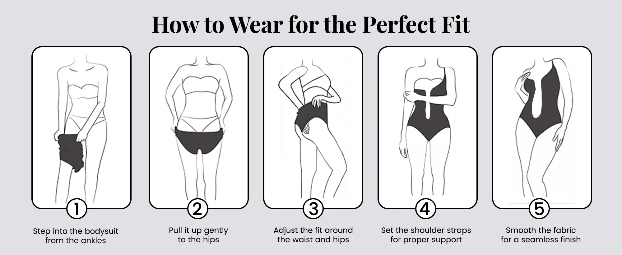 The bodysuit is available in a variety of sizes. Refer to the size chart on the product page to find the perfect fit for your body type.