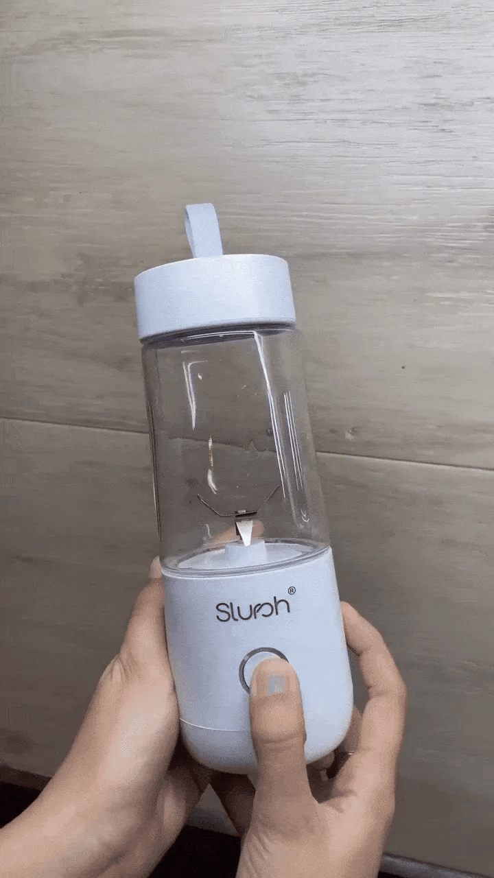 Once Slursh Bolt -350 ML Blender is fully charged, it is ready to make your favorite smoothies, juices and much more. You need to press and hold the power button, the White LED will blink 3 times and slurshing will begin. To stop, you need to press and release the power button again to stop.