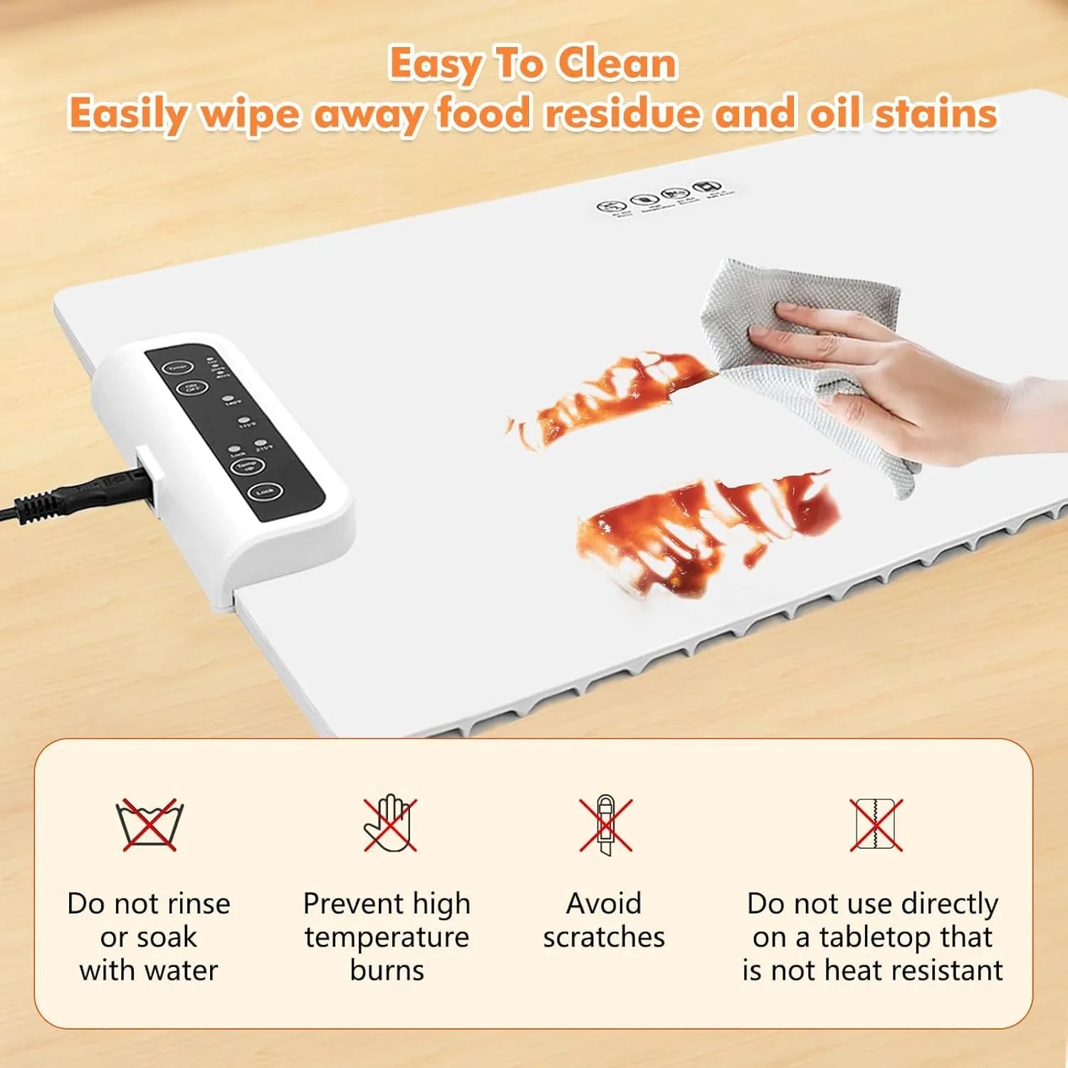 Very easy. The smooth silicone surface can be wiped clean with a cloth once cooled, making maintenance quick and hassle-free.